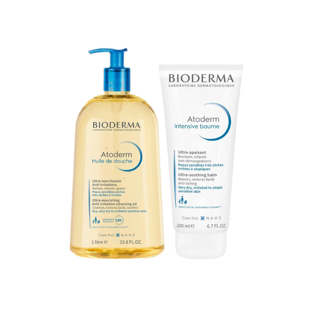 · Atoderm Intensive Baume 200 ml: bálsamo reparador intensivo con acción antipicor. El exclusivo complejo Lipigenium™, compuesto por biolípidos que se encuentran de forma natural en la epidermis, reconstruye de forma duradera la barrera cutánea al estimular la síntesis biológica de lípidos y proteínas que forman el cemento intercorneocitario. El agente dermatológico antiprurito PEA alivia rápidamente el picor y reduce la necesidad de rascar. La patente Skin Barrier Therapy™ previene la adhesión de bacterias que causan irritación incluso en las pieles más secas.