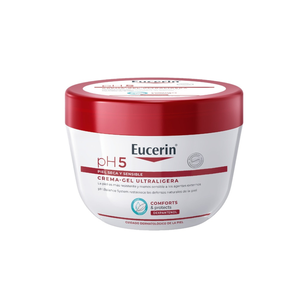 · Hidrata y cuida tu piel sensible con Eucerin pH5 Crema en gel ligera y experimenta una nueva sensación de bienestar de la piel. La fórmula no grasa de absorción muy rápida se siente ligera en la piel, ya que se funde y no deja residuos.