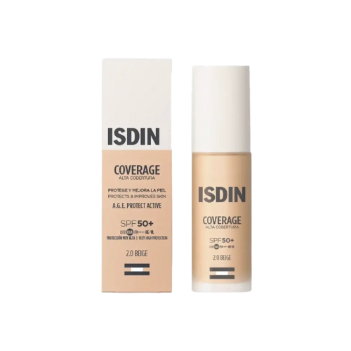 De venta en Farmacia Bonnín, tu farmacia de confianza. Modo de empleo · Agitar antes de usar. Aplica Coverage SPF 50+ sobre la piel seca con los dedos, una brocha o una esponja, distribuyendo uniformemente. Composición · A.G.E Protect Active: extracto de la microalga de origen mediterráneo Dunaliella salina, que ayuda a prevenir el proceso de glicación de la piel y a reducir las arrugas. Calma la piel y contribuye a mejorar la pigmentación inducida pr la radiación solar. · Thymus vulgaris: contribuye a reducir las imperfecciones cutáneas, ayudando a disminuir el exceso de sebo y la apariencia de los poros. Proporciona un efecto suavizante y calmante que mejora la textura de la piel.
