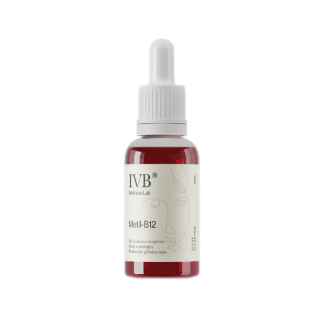 · En IVB se ha usado la forma activa metilcobalamina que además de ser absorbida con mayor facilidad, es capaz de donar a nuestro metabolismo el grupo metil que es fundamental para más de 100 reacciones metabólicas entre ellos la síntesis de carnitina, melatonina, adrenalina o noradrenalina entre otros. Así no solo optimizamos nuestro niveles de B12 sino también nuestro metabolismo de metilación.