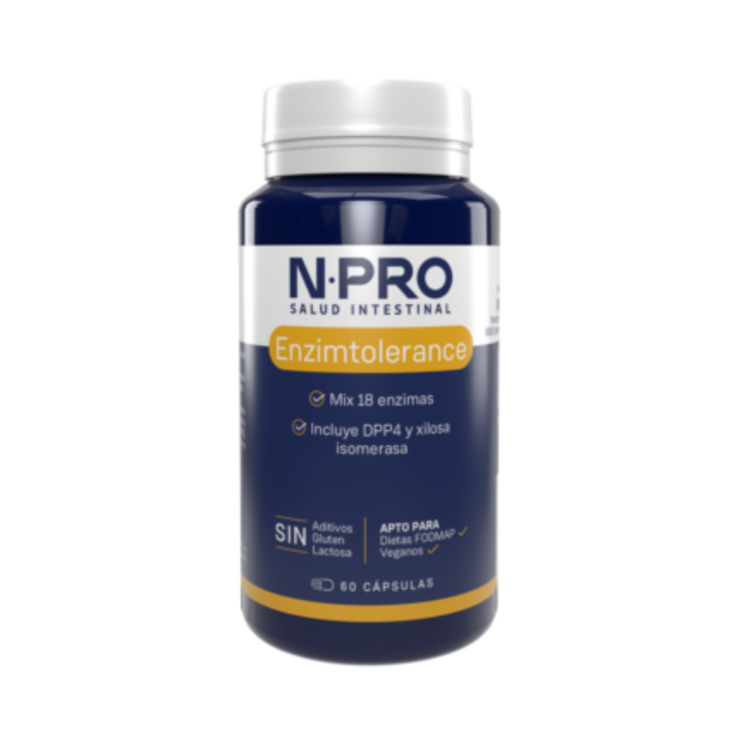 Modo de empleo · Tomar 1-2 cápsulas unos minutos antes de las comidas principales. Composición Mix enzimático 500 mg/cápsula. Amilasa (20.000 DU) 137mg, Xilosa isomerasa (2.250 U) 50mg, Pectinasa (52 endo-PGU) 35mg, Beta-glucanasa (30 BGU) 27 mg, Dipeptidilpeptidasa DPP4 (2.000 DPPIV) 57 mg, Hemicelulasa (400 HCU) 9,5 mg, Celulasa (3.500 CU) 27 mg, Proteasa (50.000 HUT) 50 mg, Xilanasa (600 XU) 9,3 mg, Lipasa (3.500 FIP) 12 mg, Glucoamilasa (45 AGU) 9 mg, Fitasa (2.000 PU) 11 mg, Alfa-galactosidasa (225 GALU) 5 mg, Bromelaina (125.000 FCCPU) 5,3mg, Papaina (16.000 FCCPU) 0,3 mg, Lactasa (3.500 ALU) 23 mg, Diastasa de malta (200 DP) 22,5mg, Invertasa (200 SU) 1,5 mg. Cápsula vegetal.