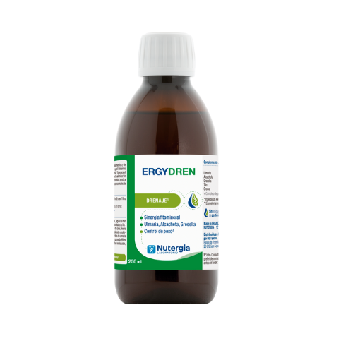 · ERGYDREN asocia plantas reconocidas para estimular las funciones de eliminación renal y/o hepática, que permiten un drenaje del organismo y facilitan la pérdida de peso.