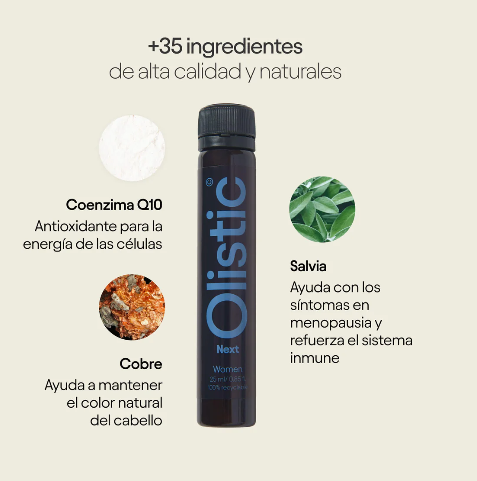 · Olistic Next es un complemento alimenticio bebible diseñado para mejorar el crecimiento y la longevidad capilar.