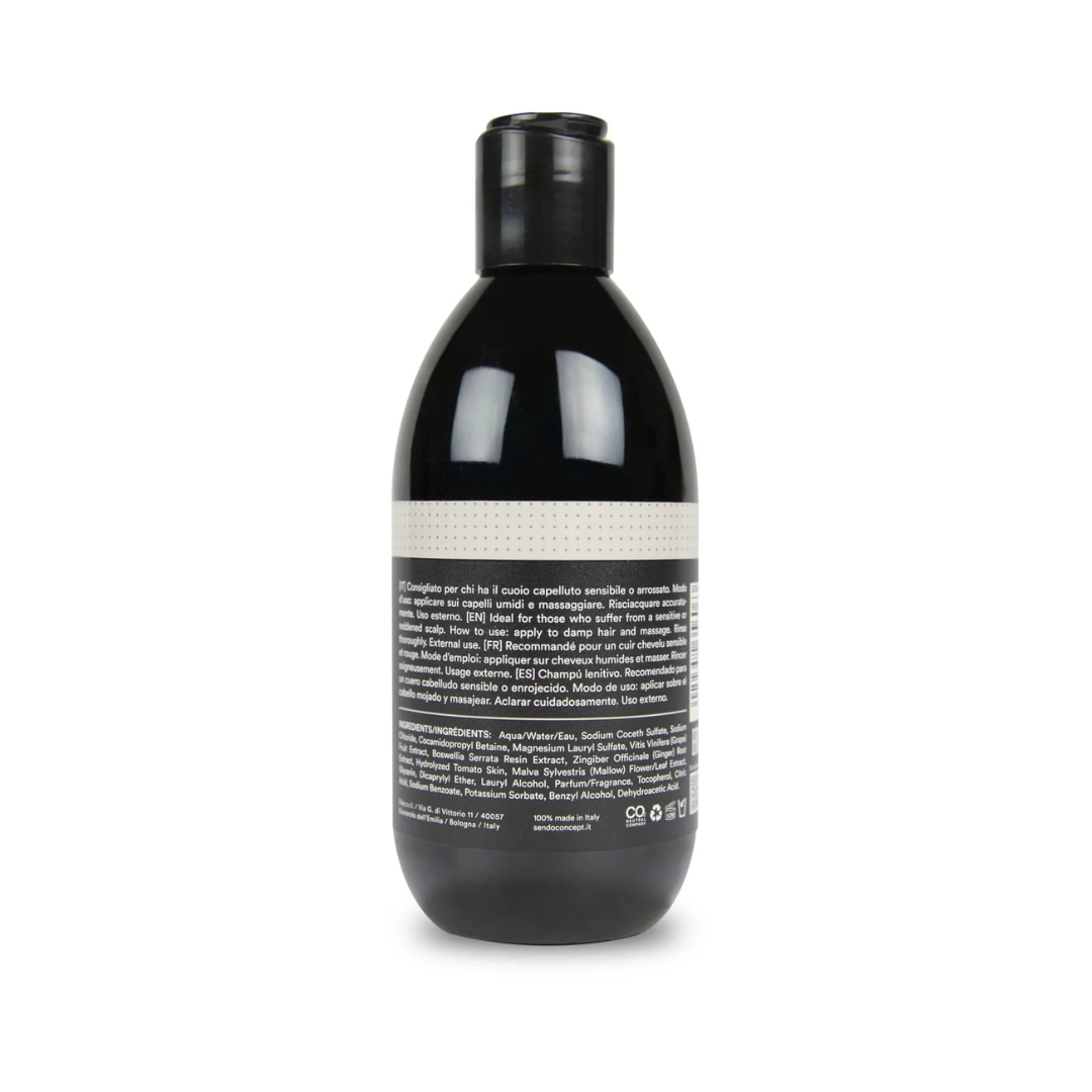 · Los ingredientes del Champú Lenitivo de la línea Soothing han sido estudiados y seleccionados por nuestro Laboratorio de I+D para satisfacer las necesidades del cuero cabelludo enrojecido y sensible. El extracto biotecnológico de tomate tiene una acción protectora y antioxidante sobre el cabello, mientras que el fitocomplejo prebiótico de uva, jengibre e incienso ayuda a preservar el bienestar general del cuero cabelludo.