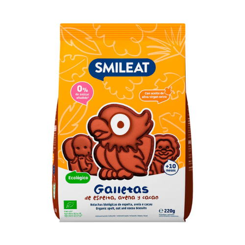 De venta en Farmacia Bonnín, tu farmacia de confianza. Modo de empleo · Dáselas enteras si ya tiene dientes, mojadas en leche o machacadas acompañando un puré de fruta o yogur. · Conservación Conservar en un lugar fresco y seco. Composición Harina de espelta (gluten)* 55%, zumo concentrado de manzana* 18%, aceite de oliva virgen extra* 13%, harina de avena (gluten)* 10%, cacao en polvo* 3%, aroma natural de vainilla, aroma natural de cacao, gasificante: carbonato de amonio, vitamina B1. *Procedente de agricultura ecológica.