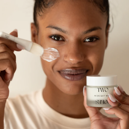 · Con la piel bien seca, aplicar una fina capa con la brocha súper suave que hemos diseñado especialmente para que este momento sea, además de skincare, tu momento de autocuidado semanal.